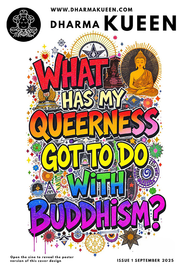 Through reflections, stories, poetry, and shimmering insights, this zine invites you to see that queerness isn’t outside the Dharma — it is already woven into the path.